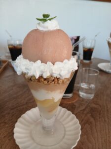 軽めのランチを頂いて、いよいよメインの桃のパフェです。
