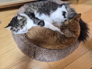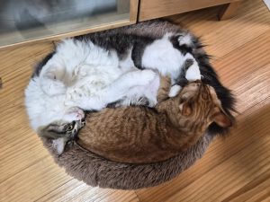 結局、諭吉は別の寝床へ。ヤマトも飽きて別の場所へ。