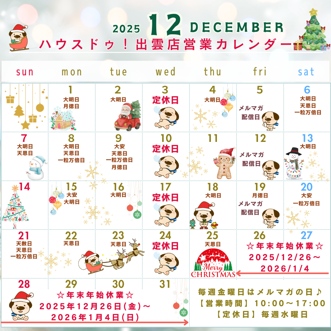■何をやっても良い日とされている大安の営業日は12/9(火)・15(月)・20(土)です!