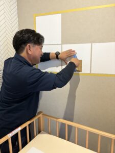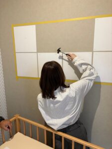 ↑施工の様子。私たちコーディネーターはタッカーを使うのも初めてだったので、工務の福島にお手本を見せてもらいました!
