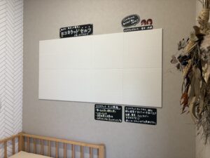 白い板は、エコカラットを貼るためのマグネットの基盤です。